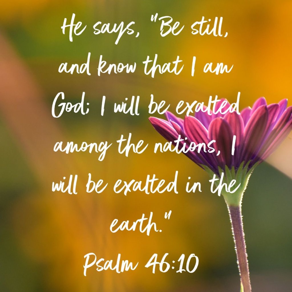 I wonder if that is what He was trying to tell us in that one simple Psalm? When we are still, it allows our thoughts to return to Him, which allows us to know Him, to know that He is God and that He is worthy of exaltation. No wonder Jesus arose early and found a quiet place to be still and know during his time on earth. It is in the stillness that we begin to know God.